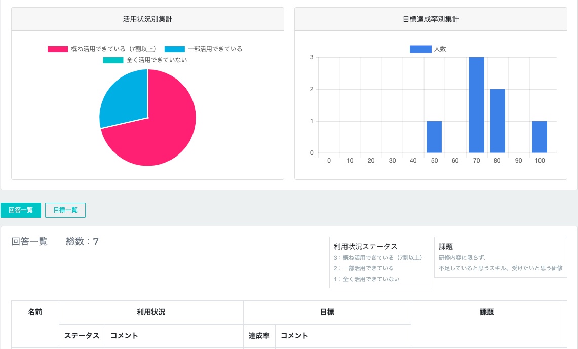 ・研修をご受講された方の研修実施後のご状況をご確認いただけます。