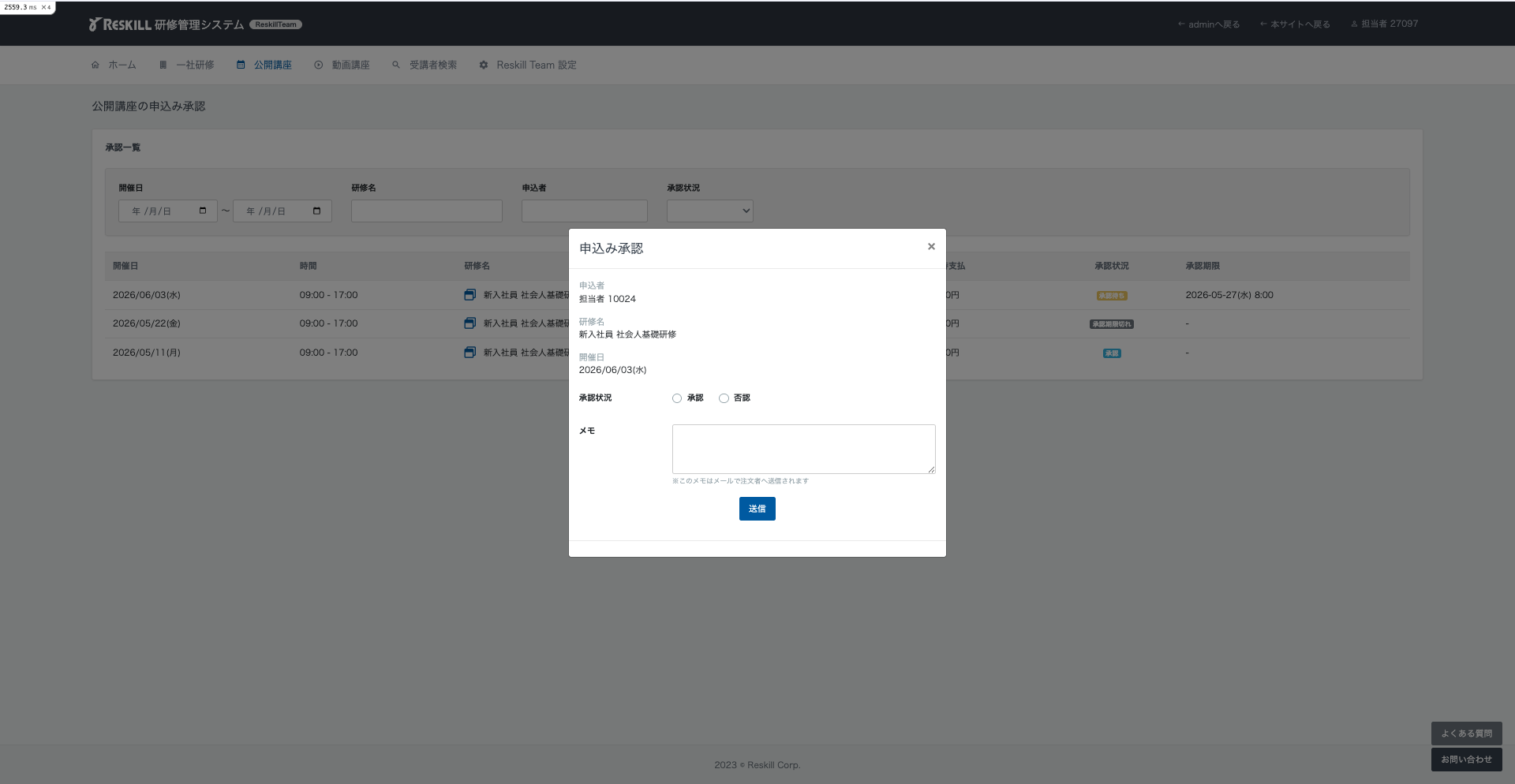 | 管理者 | すべての申込み |